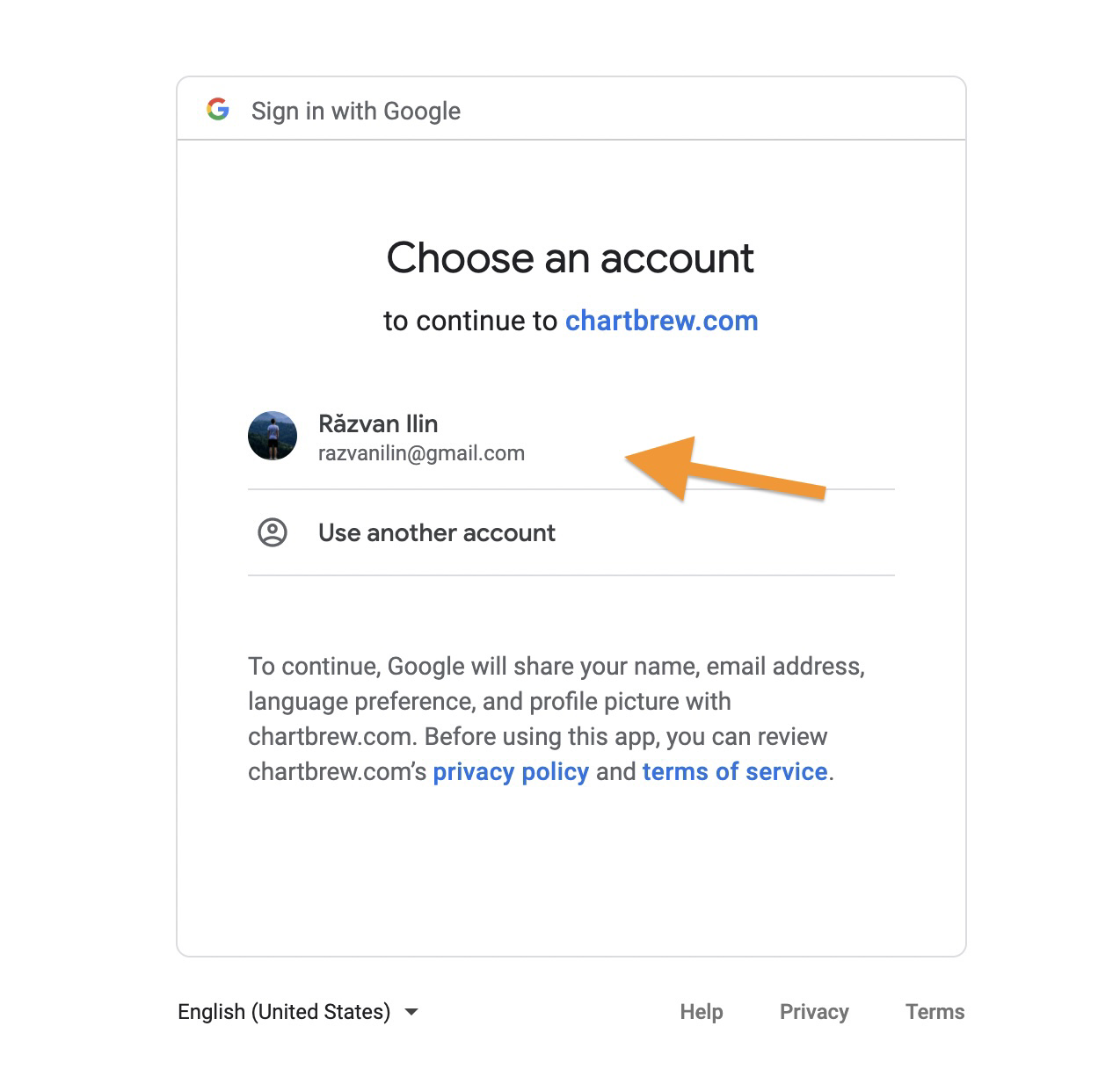 Select one of your Google accounts that has access to your Google Analytics data