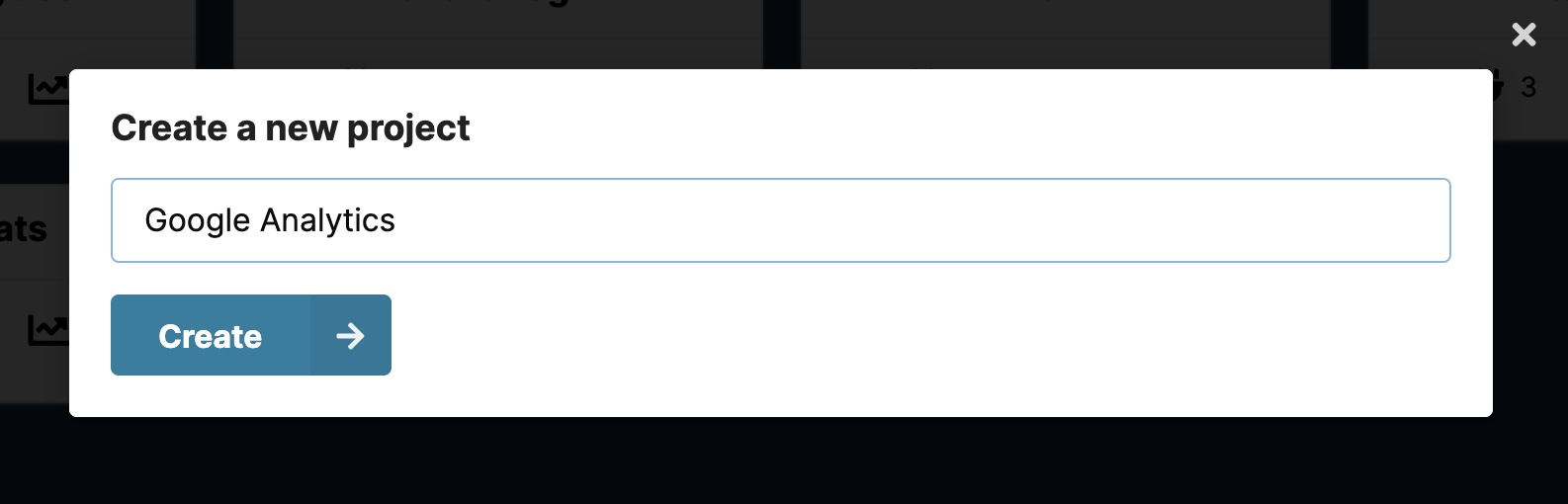 If you don't already have a Chartbrew account, you can head over to chartbrew.com/signup to set one up for free. Head over to your dashboard and create a new project or use an existing one: