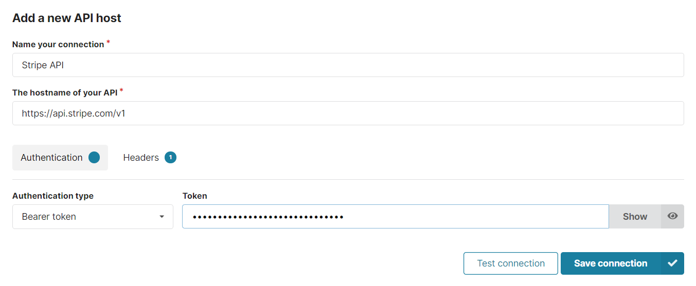 When you test your connection, it will give you an error because you can't get any data from the root API path, but that's fine. It's important to keep the host as the root API path because we are going to re-use this connection for multiple charts as you will see later in the post.