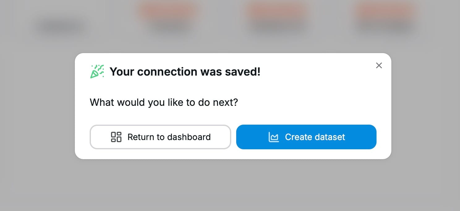 Next, we are going to create our first dataset. Click on the Create dataset button after saving the connection. You can also create datasets from the Dataset tab on the homepage.
