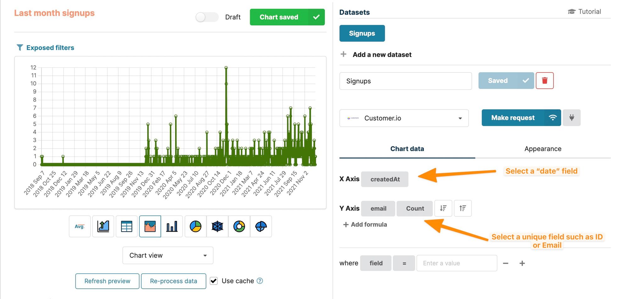 Creating the first Customer.io chart