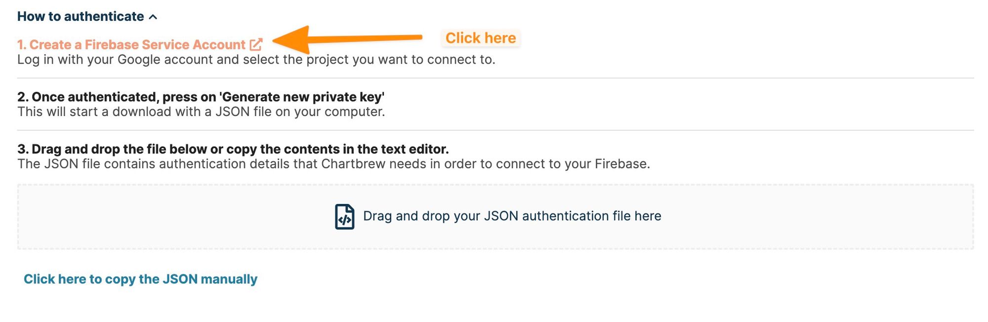 Copy the URL in the connection form in Chartbrew, then follow the instructions on how to get the service account used for authentication.