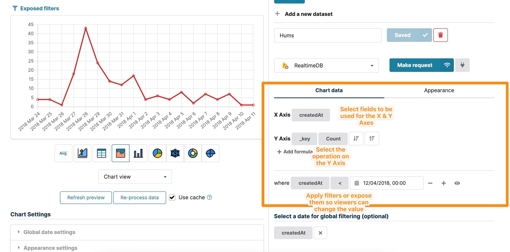 In this tutorial, we went through authenticating a connection with the Firebase Realtime Database and creating the first chart using the data. There are more things you can do with this data in Chartbrew. You can try the following: